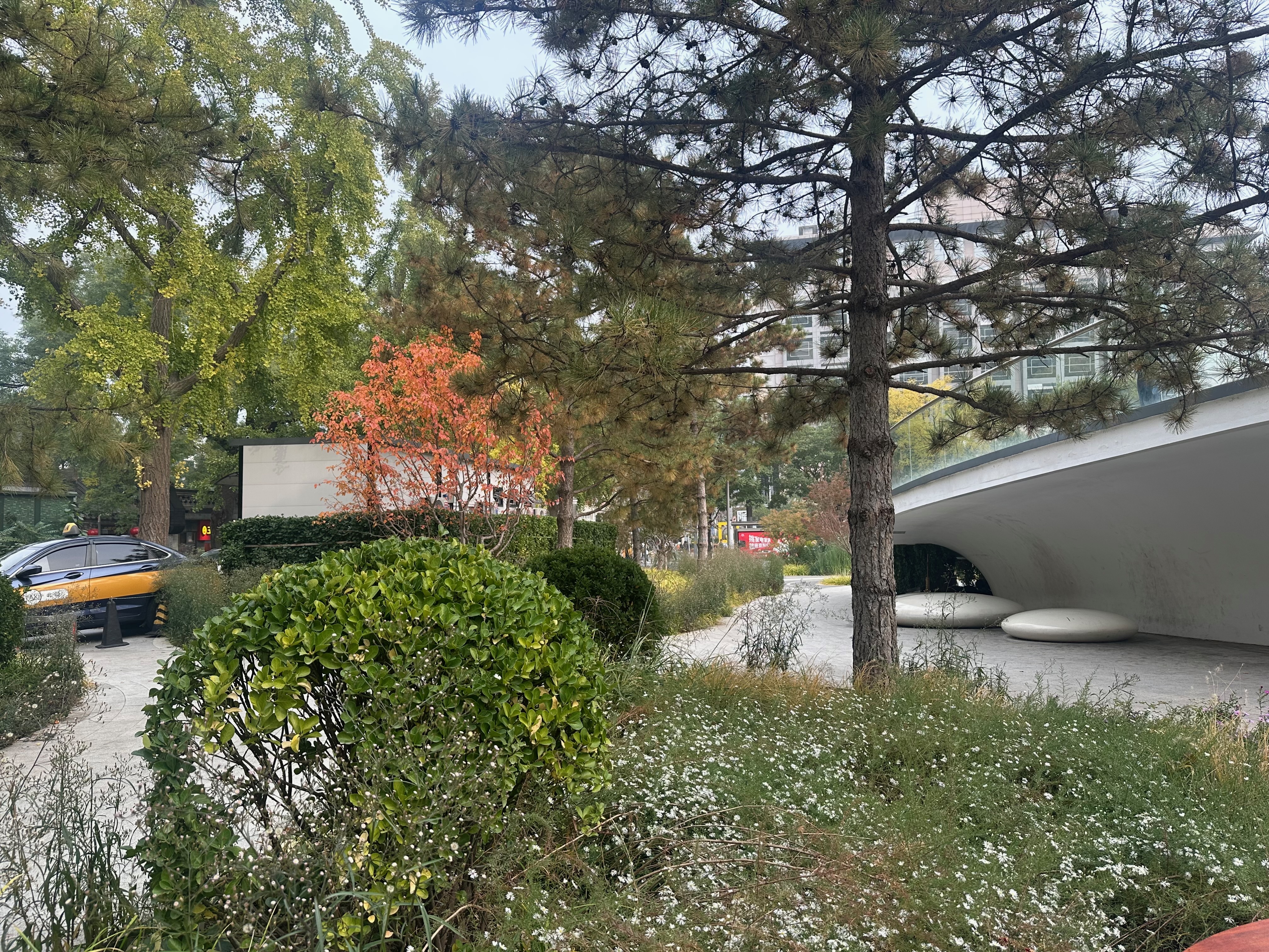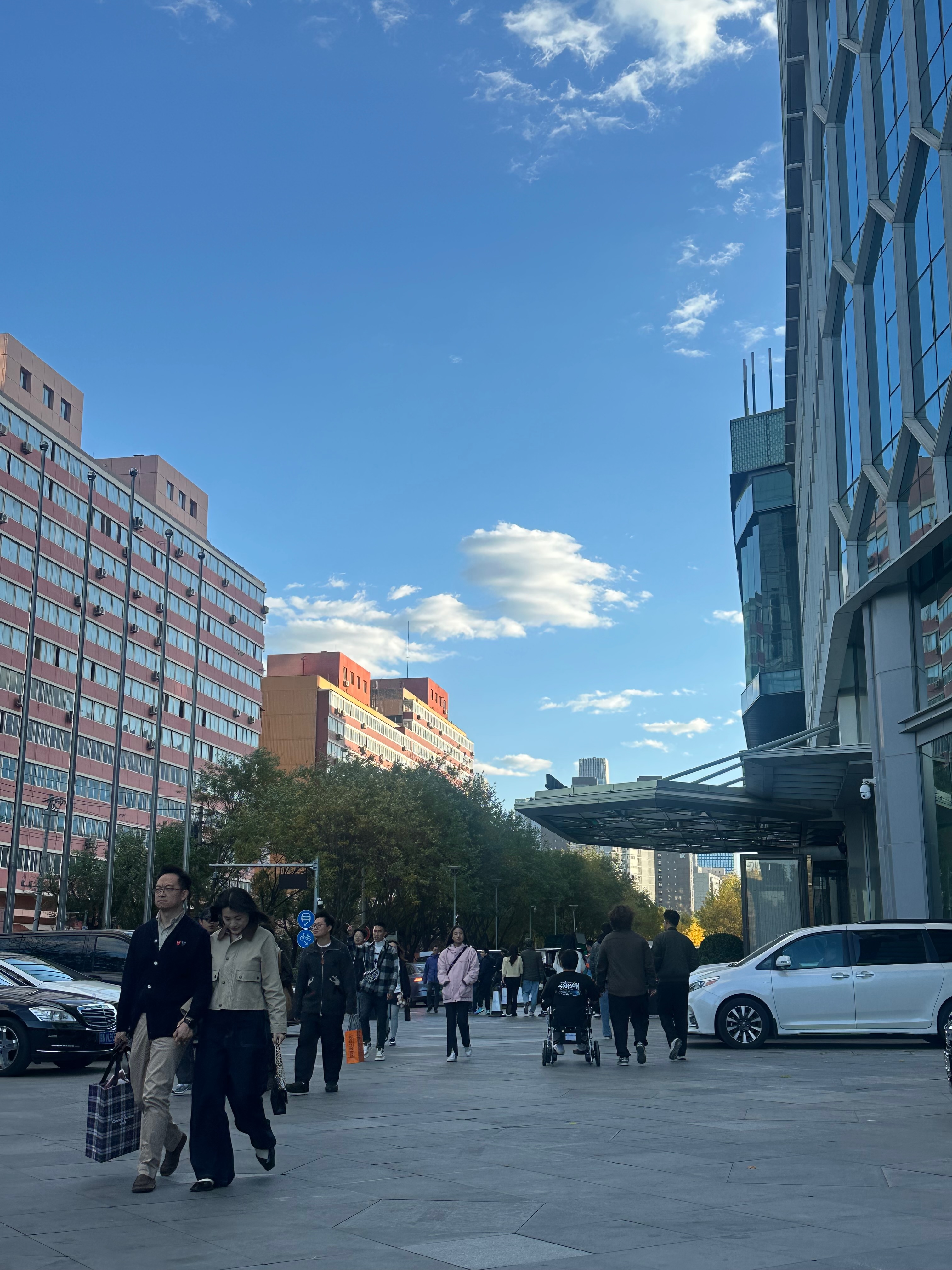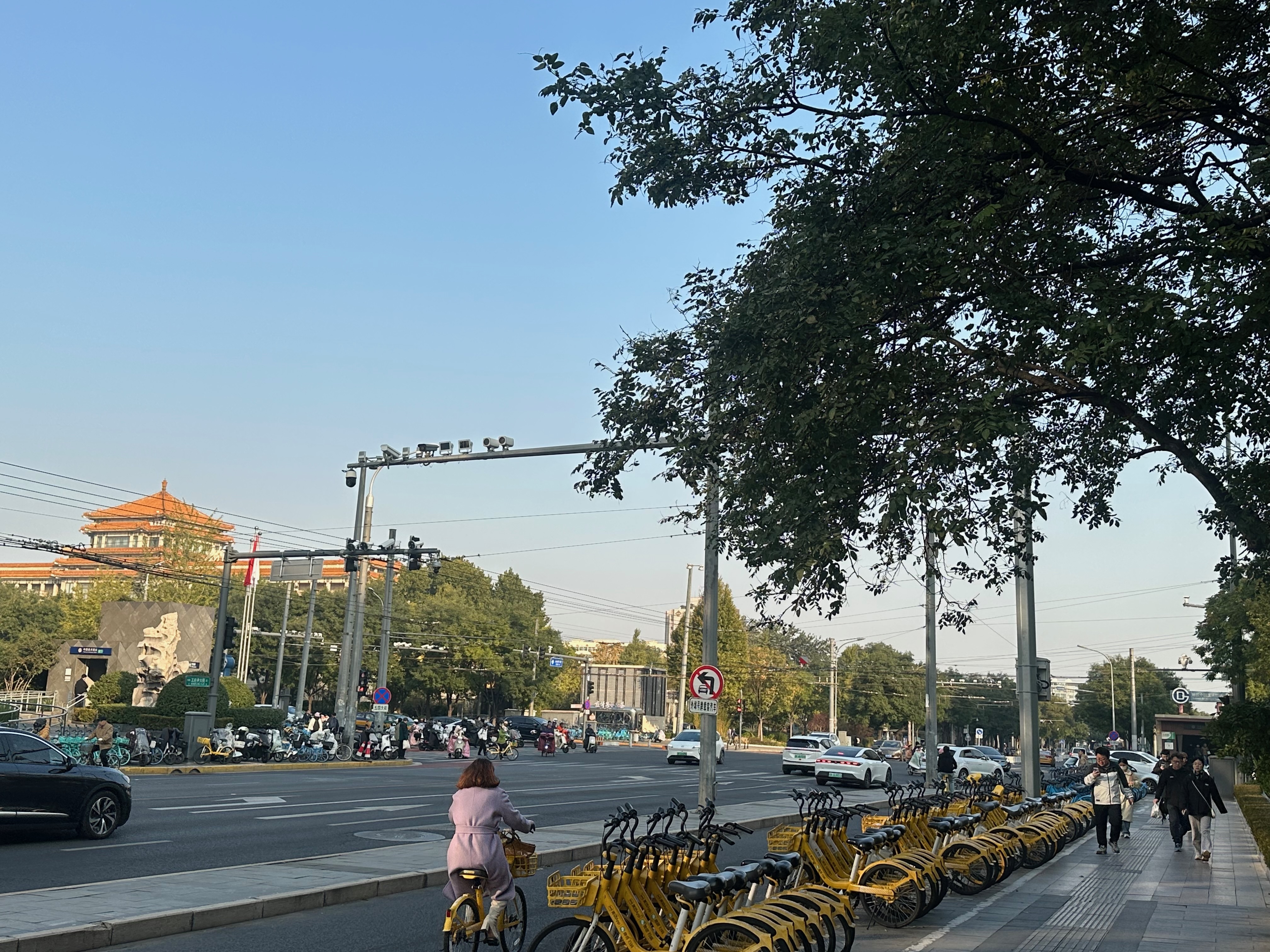 Street. On my last visit in 2019 there were many construction hoardings at this junction, plus jumbles of rental bikes strewn across the pavements. The hoardings have now been replaced by entrances to the new National Art Museum subway station on Line 8 of the Beijing subway. The rental bikes are all now neatly arranged, as we also see in London now. The junction had a much neater and cleaner appearance than I remember from previous visits.