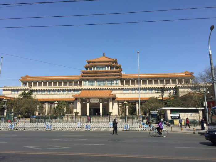I visited again the National Art Museum of China, just across the junction from the Prime Hotel, as I have done on all previous visits to Beijing. I took this particular photo in March 2016, but the external appearance of the Art Museum has not substantially changed since then. It was originally built between 1958 and 1962, and opened to visitors in 1963. It is well worth visiting this Museum on every trip to Beijing, as there are exhibitions spread out over several floors and they are frequently changed.