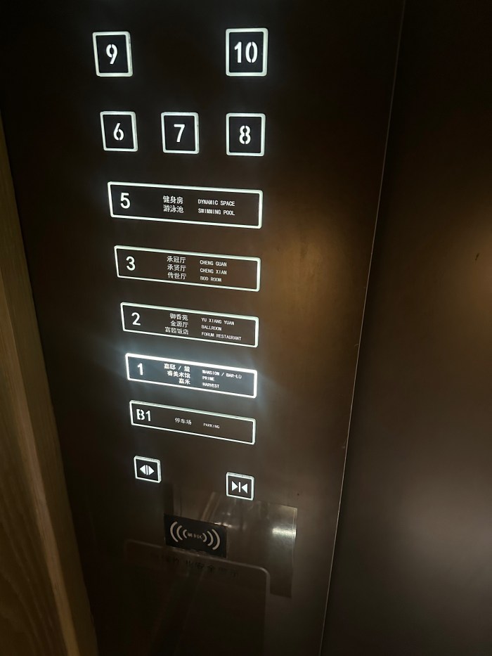 This is the floor selection panel in one of the lifts at the Prime Hotel. You will note that there is no floor 4. That is because the number 4 is considered to be inauspicious in China, as its sound is similar to the sound of the character for ‘death’ (though not the same tone).