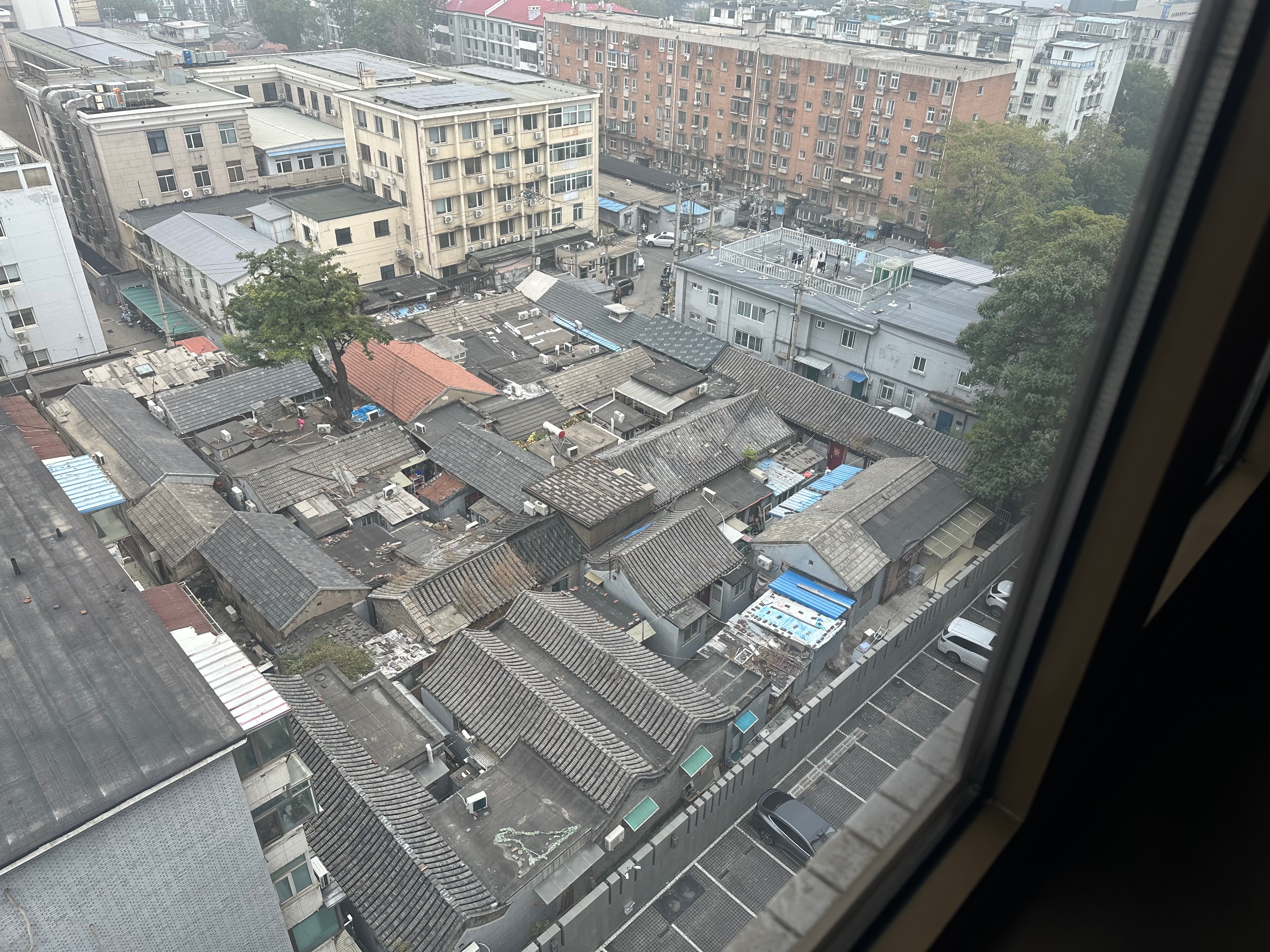 There is a traditional Beijing residential area behind the Prime Hotel, a collection of one and two storey houses with very small courtyards. It appeared unchanged from what I saw on previous visits, apart from the many air conditioning units at roof level. Residential and office buildings further away from the hotel now have solar panels on their roofs, which I did not see in the past.