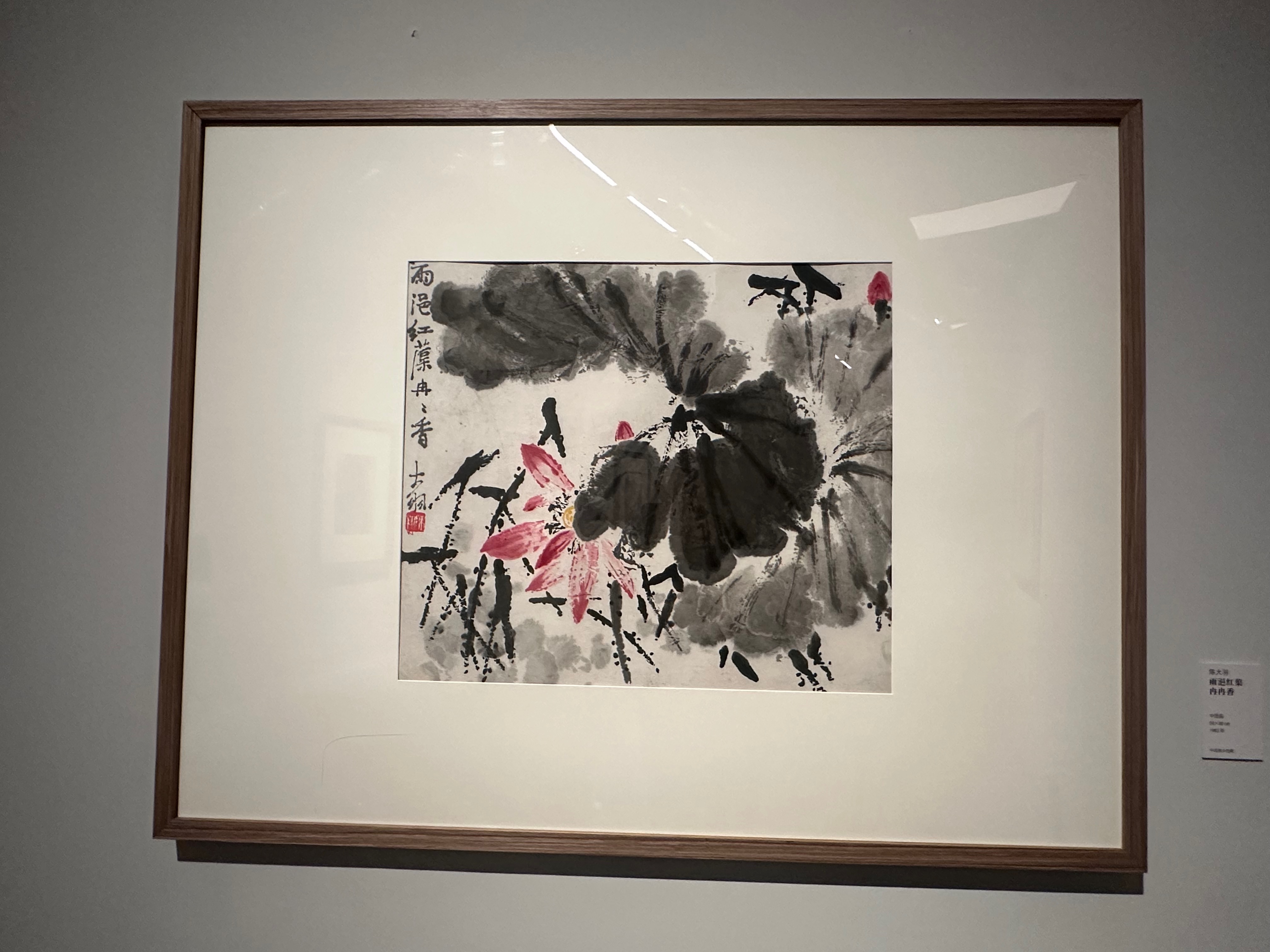 This is a painting by Chen Dayu (陈大羽) entitled 雨浥红蕖冉冉香 (literally ‘rain soaked softly drooping fragrant red lotus’), painted in 1963. Chen Dayu (1912 – 2001) was a Chinese painter, calligrapher, seal carver and educator. He graduated from Shanghai Art College in 1935 and became an apprentice of the very famous Chinese artist Qi Baishi who died in 1957. He is best known for his paintings of roosters.
