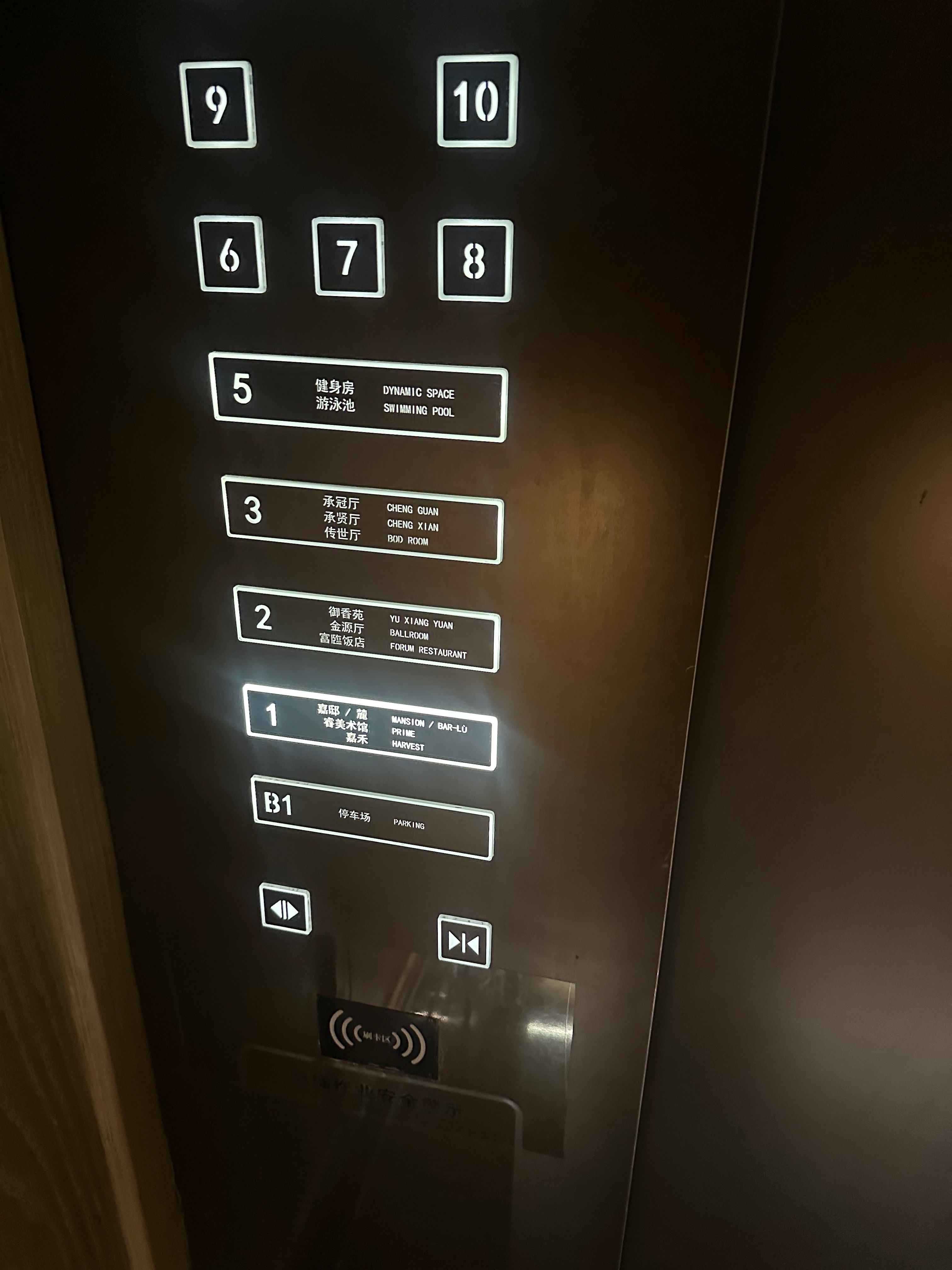 This is the floor selection panel in one of the lifts at the Prime Hotel. You will note that there is no floor 4. That is because the number 4 is considered to be inauspicious in China, as its sound is similar to the sound of the character for ‘death’ (though not the same tone).